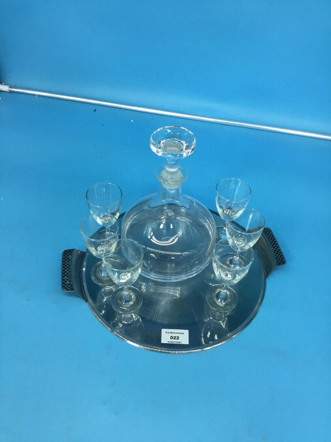 Silver Tray, Decanter and 6 Glasses