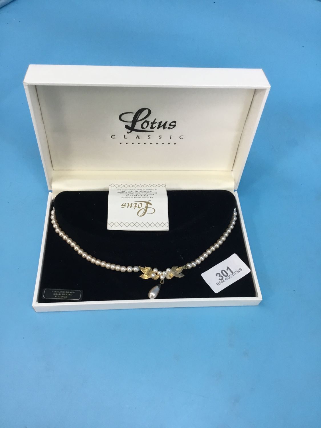 Lotus Boxed Pearls and a Pair of Gold Plated Sterling Silver Earrings