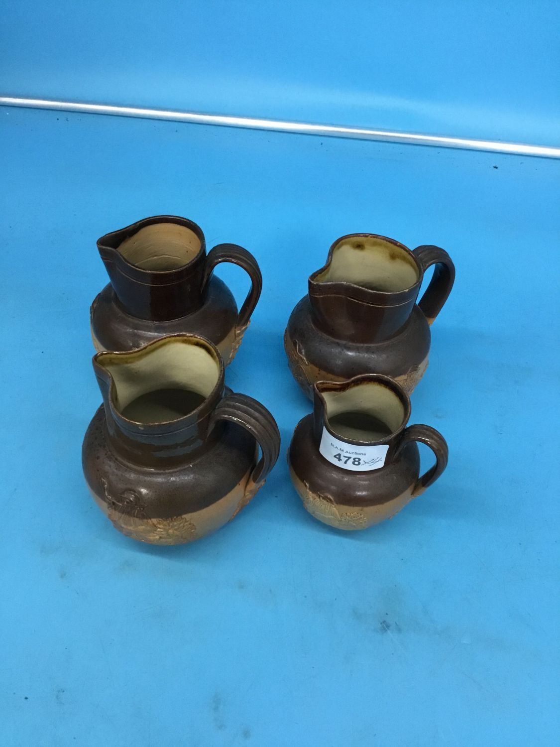 4 Antique Doulton Lambeth Jugs 3 Large and 1 Small
