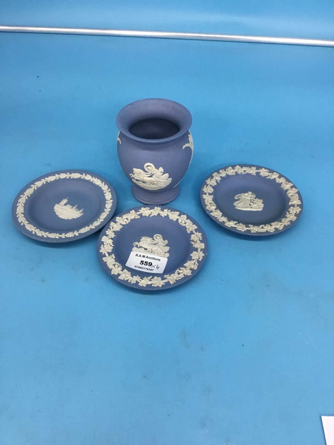 Wedgewood Jasperware x4 To Include A Vase and Ring Plates x3