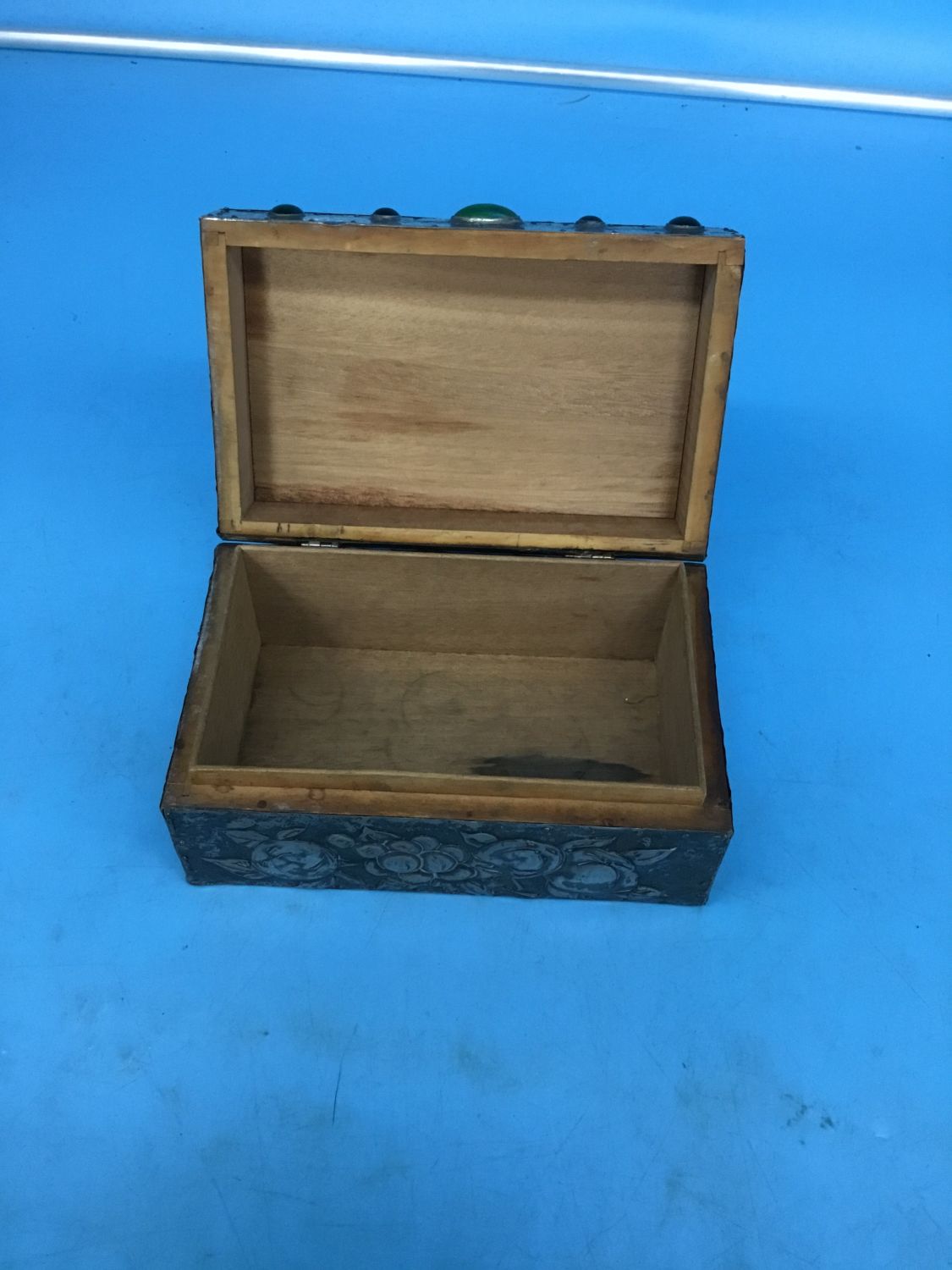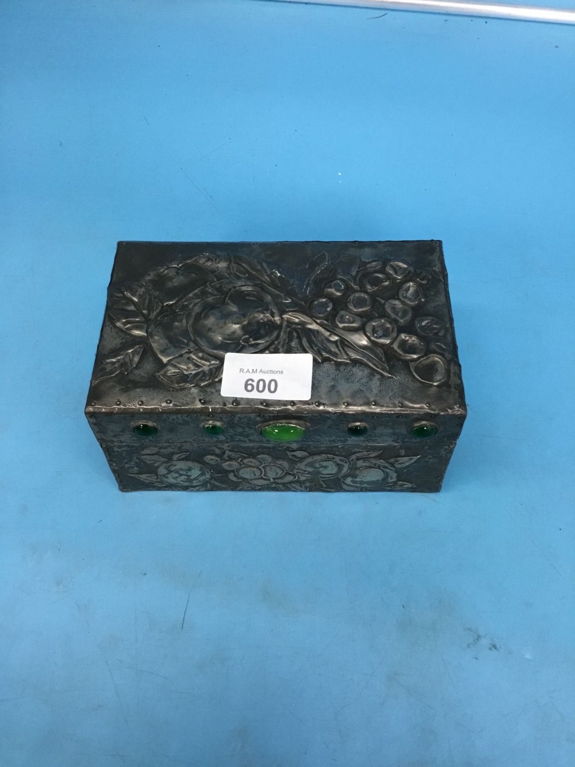 Pewter Arts & Craft Style Oblong Box With Cabochon Decoration.