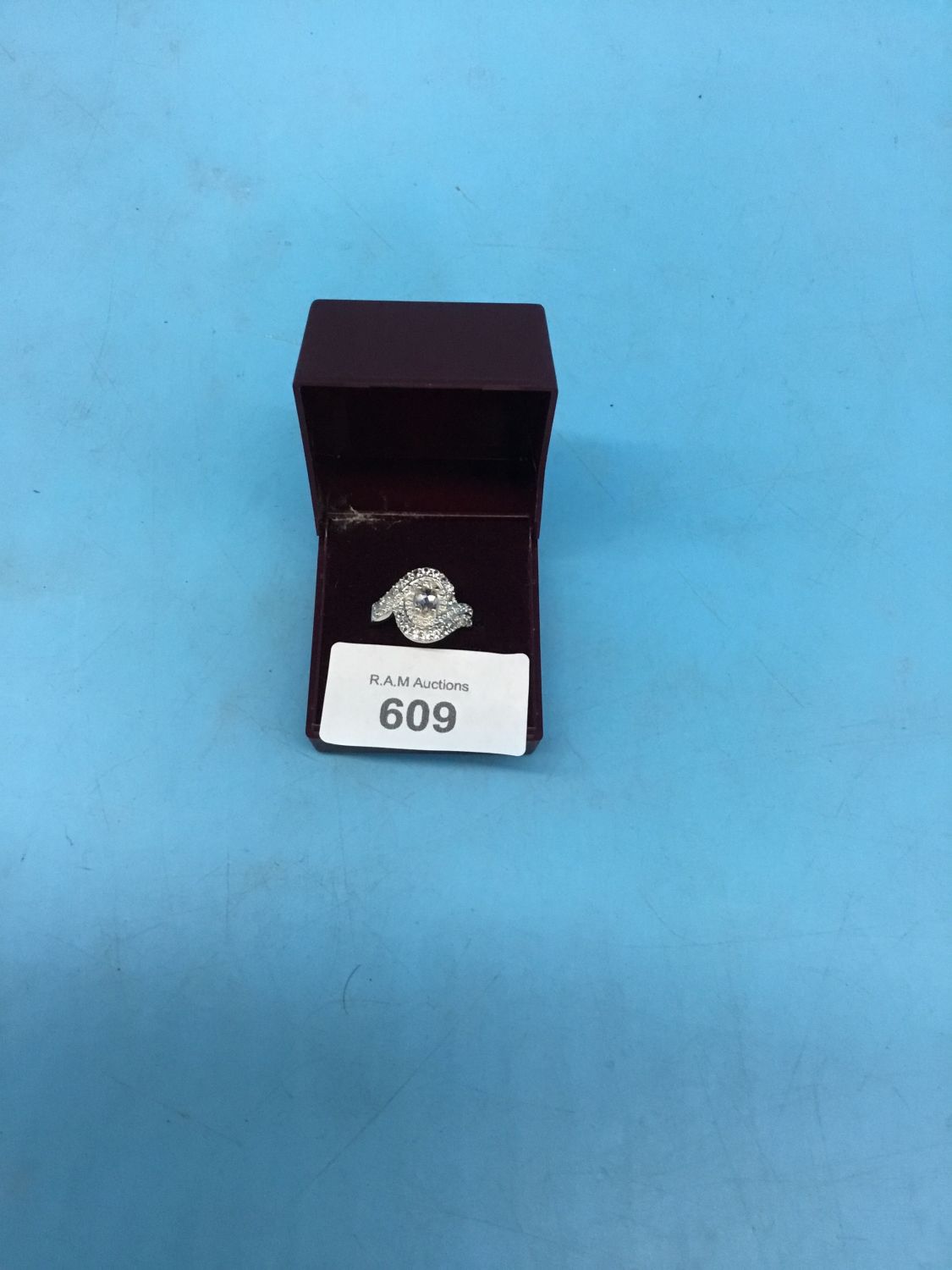 925 Silver & Crystal Ring Set with a Pale Pink Centre Stone