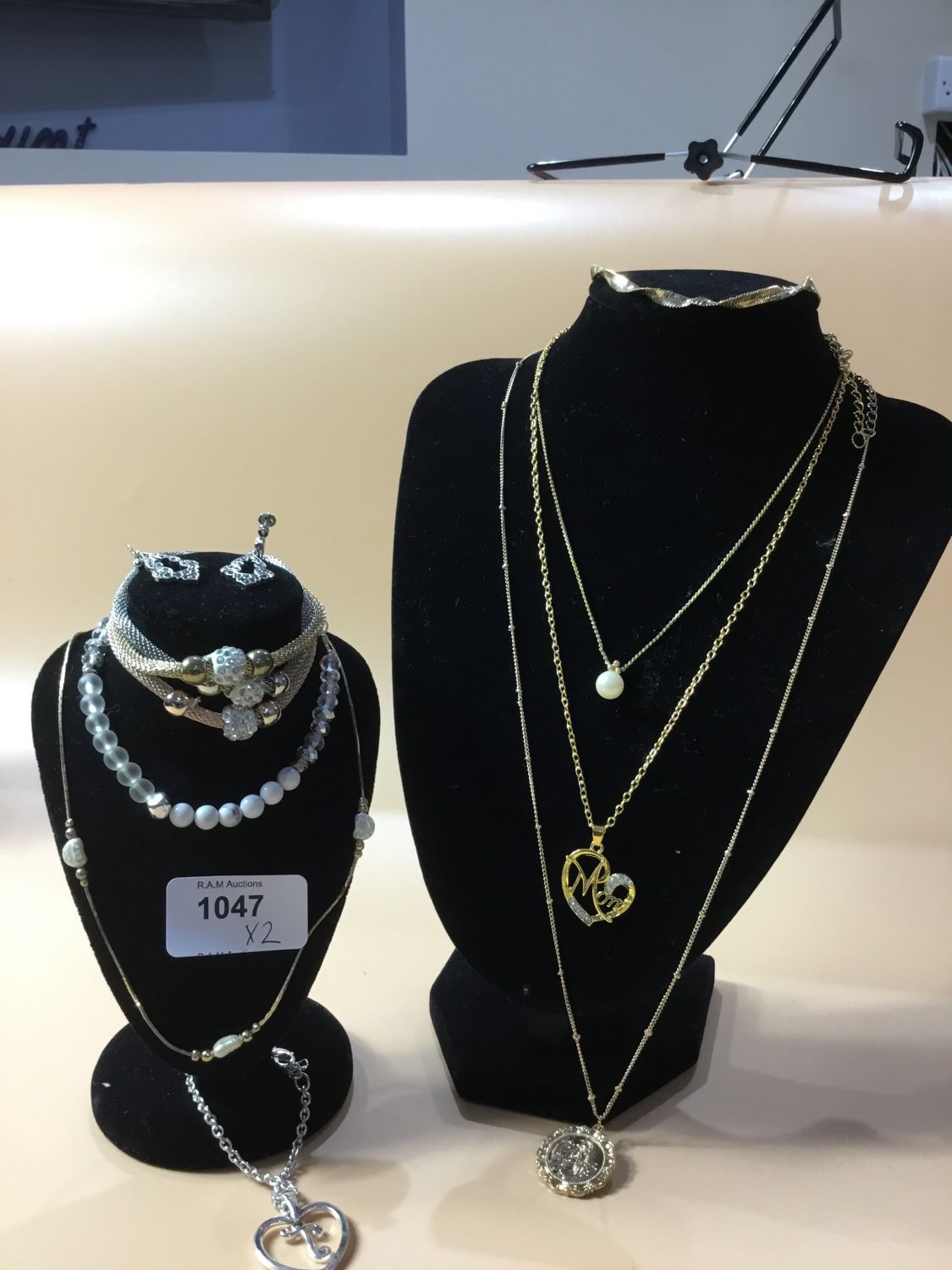 Large and Small Jewellery Bust x2 To Include Necklaces and Bracelets (stand not inc)