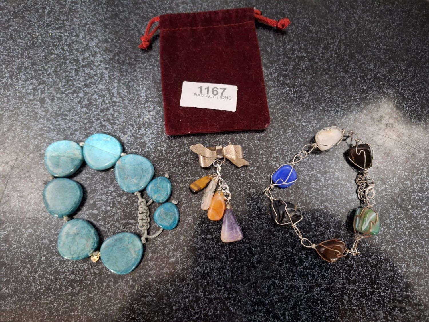Vintage Semi Precious Stoned Brooch and 2 Semi Precious Stoned Bracelets