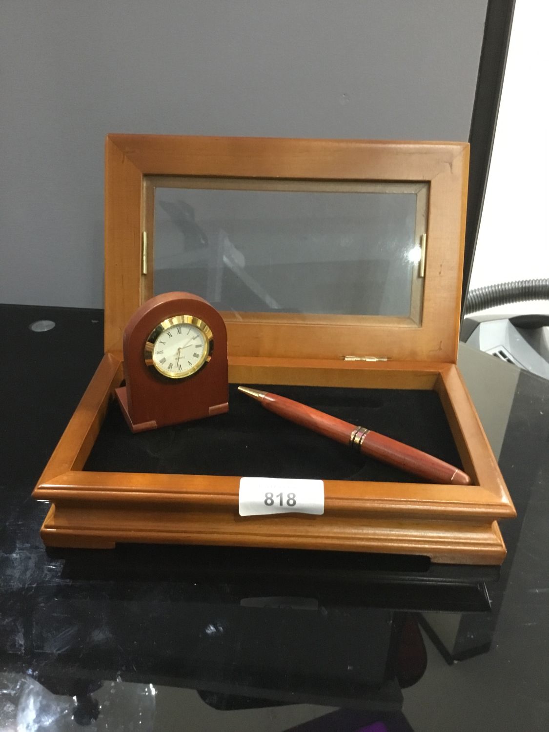 Miniature Clock and Pen Set in Display Case