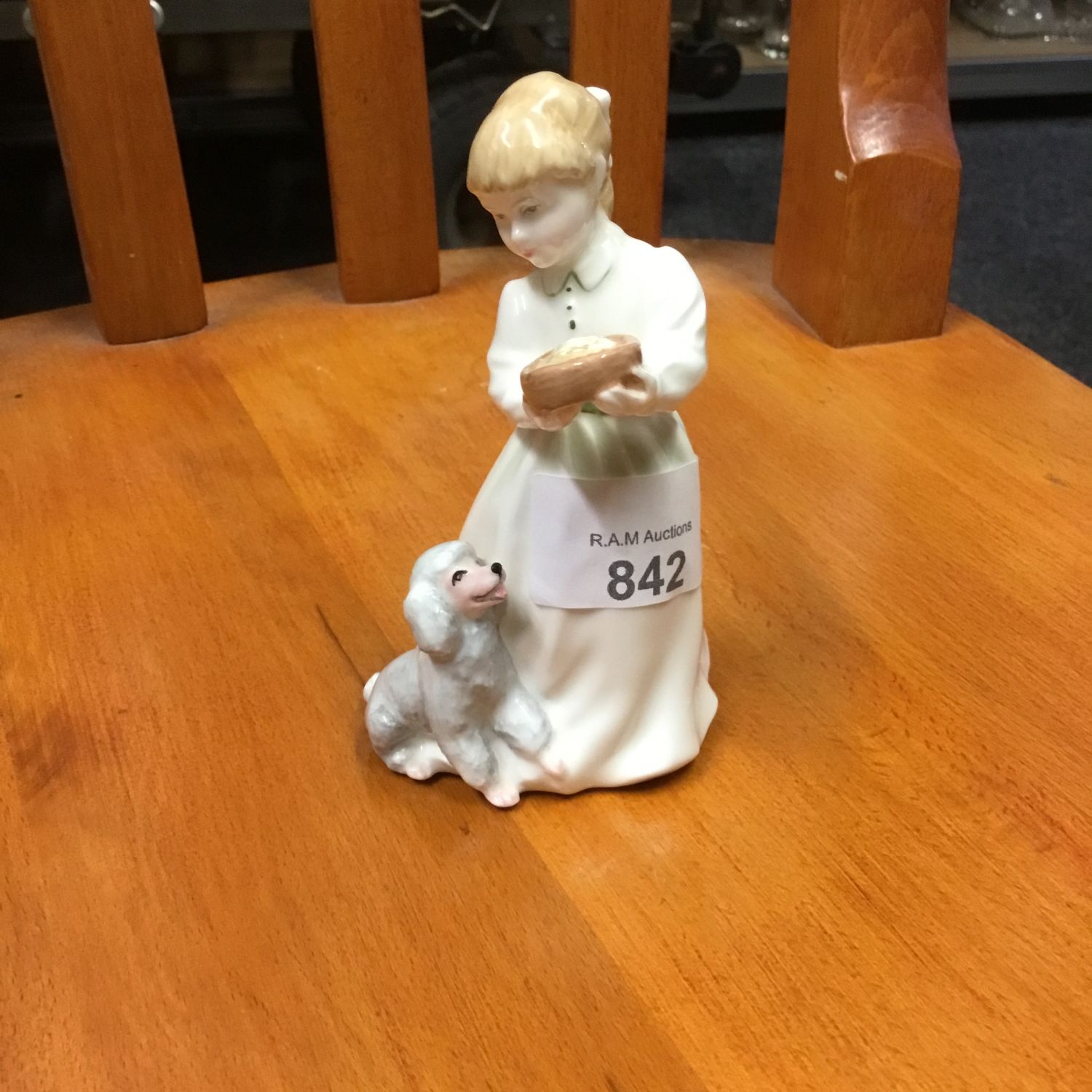 Royal doulton figure 4” dinner time little girl feeding her dog