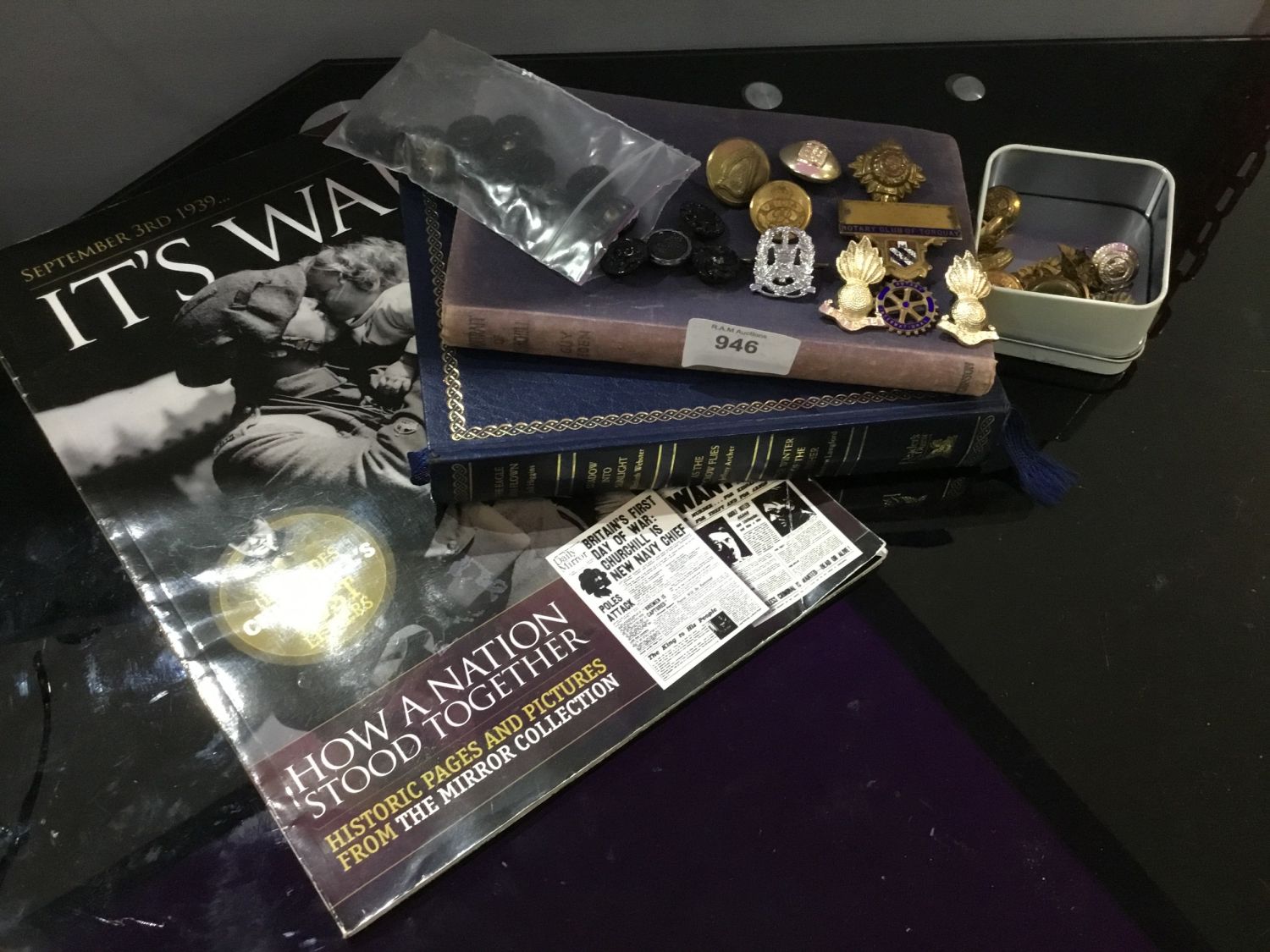 Military Collection To Include Badge, Buttons and a Book