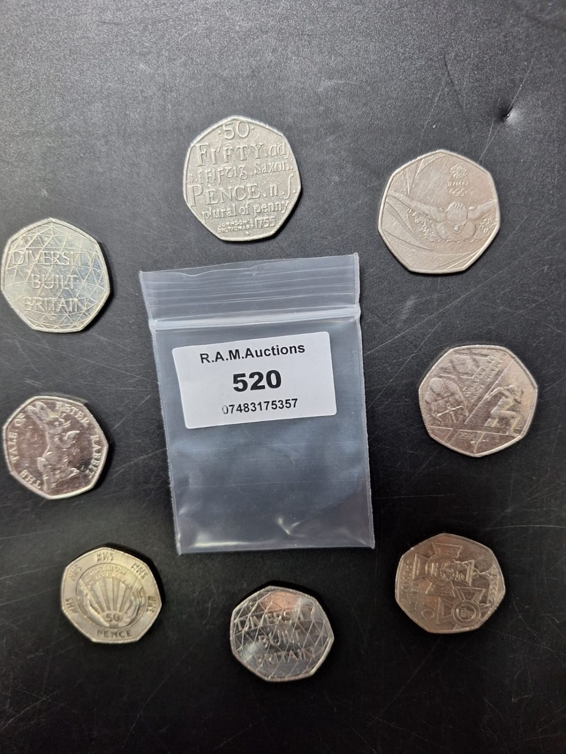 Assortment of Special 50p coins x8 To Include Diversity x2, Olympics x2, Peter Rabbit, NHS, V Cross and 50p Plural