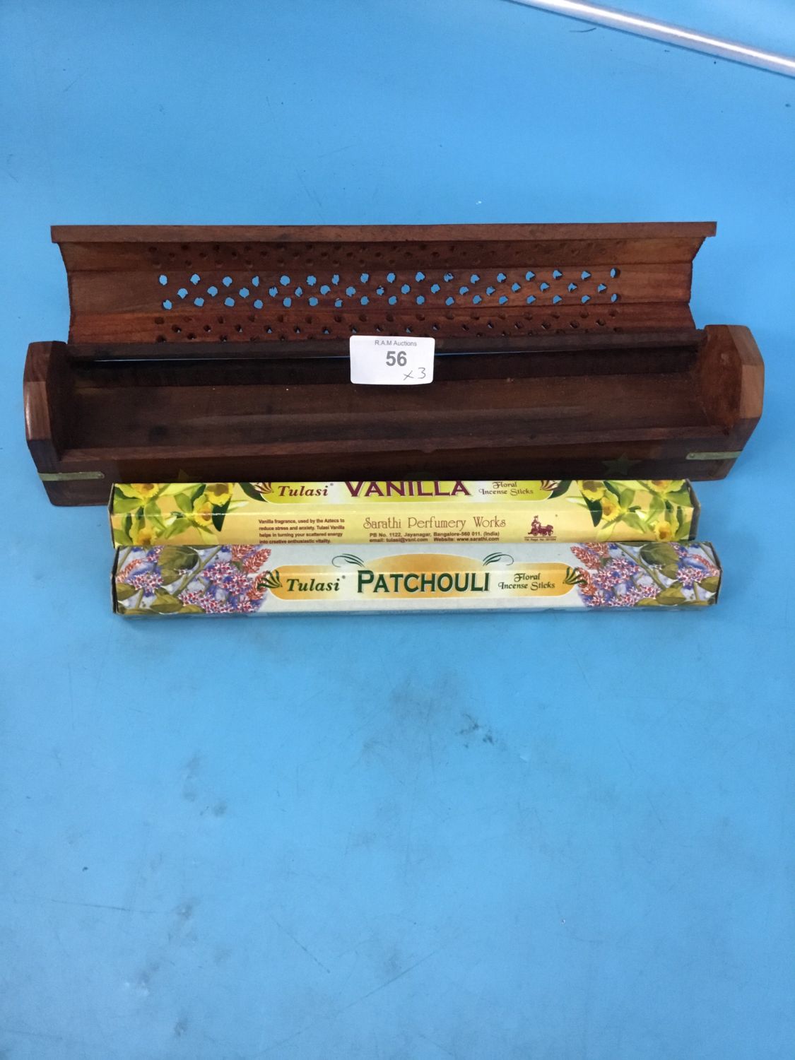 Wood & Brass Incense Stick Holder and Incense Sticks