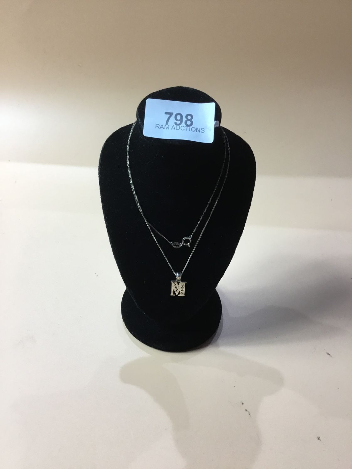 Boxed 925 Silver Stoned M and Chain