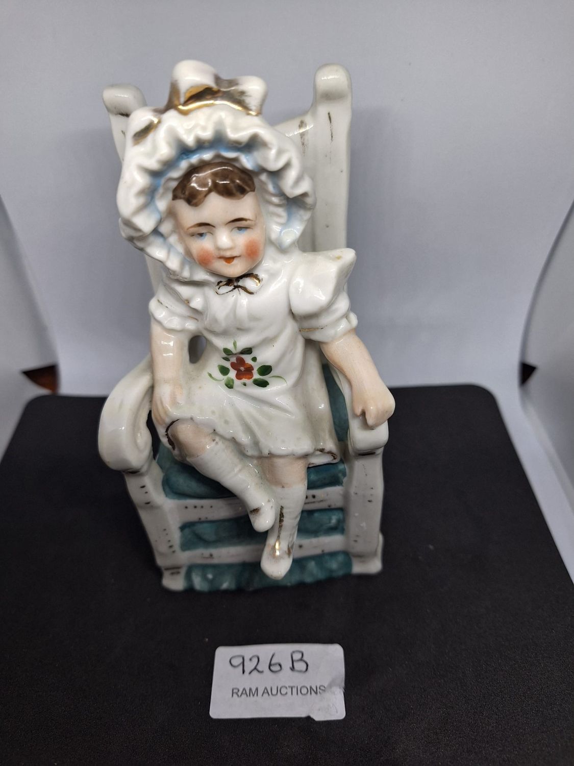 Antique Flat Back Girl in Chair with Bonnet Super Piece